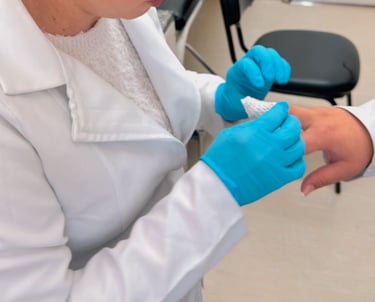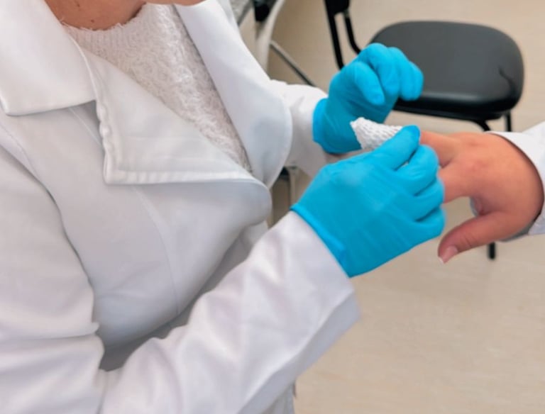 Troca de curativos com técnicas que aceleram a cicatrização.