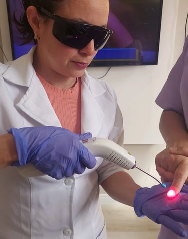 Terapia com laser de baixa potência que estimula a regeneração celular e alivia a dor ,trazendo alivio e conforto.